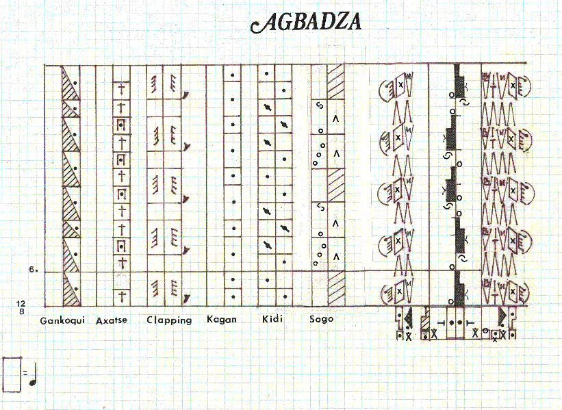 ButtonAgbadza is a war dance of the Ewe people of Ghana, Benin and Togo. In fact there have been more studies done on the music/dances of the Ewe people of Ghana than any other ethnic group in Africa. Agbadza gained prominence in the writings of A.M. Jones in his book Studies in African Music, Volumes 1 and 2. Desmond Tay, a brilliant drummer from Ghana, served as the cultural informant or master drummer for this study. Agbadza today can be viewed at funerals and other social gatherings.